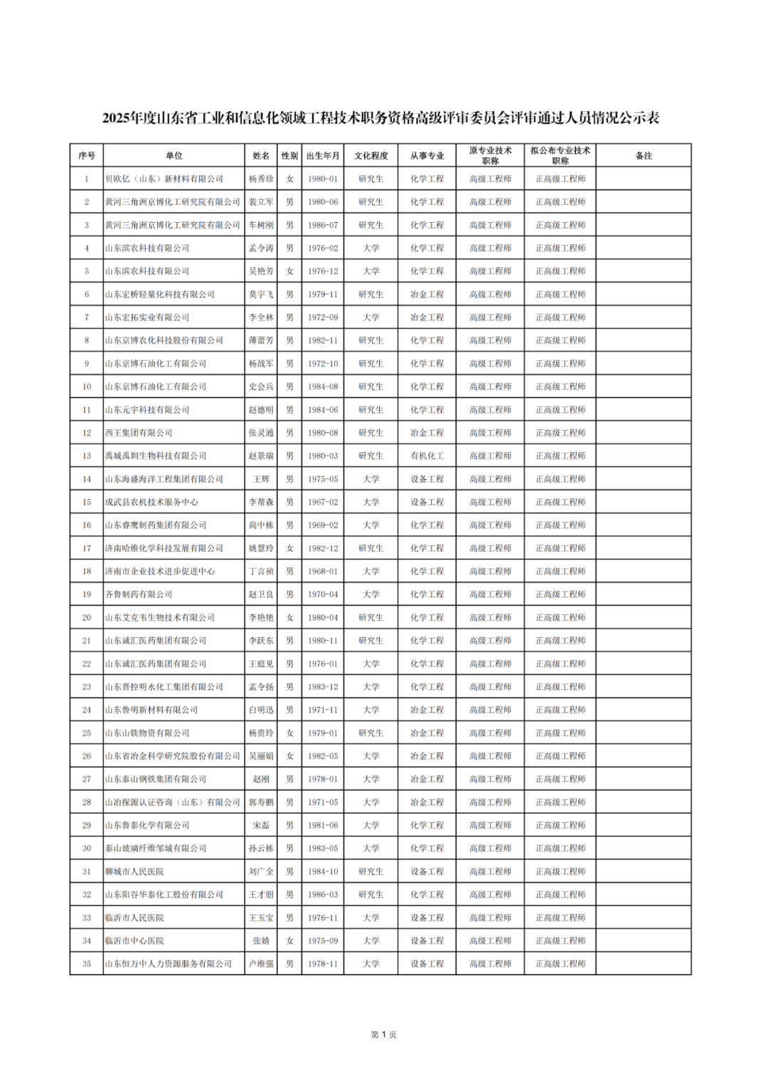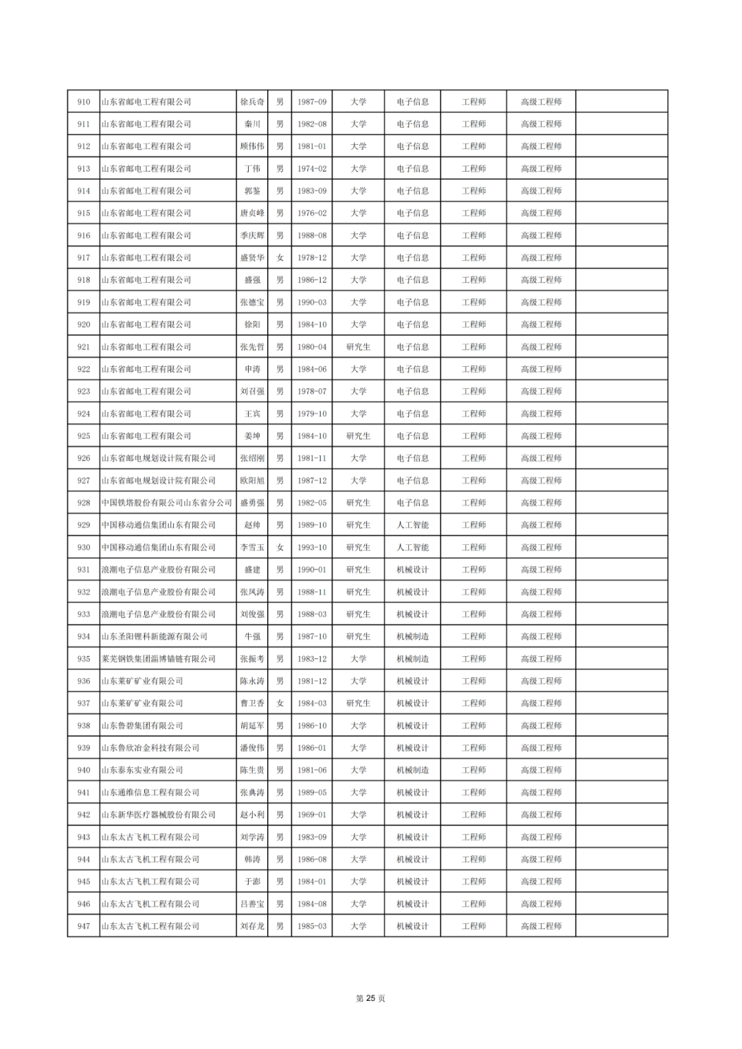 2025年度山东省工业和信息化领域工程技术职务资格高级评审委员会评审通过人员情况公示表.pdf