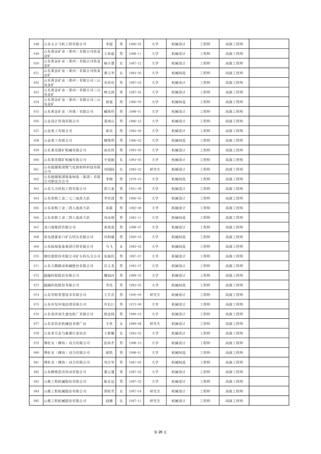 2025年12月23日至26日,山东省工业和信息化领域工程技术高级职务资格评审委员会对2025年度申报工业和信息化领域工程技术高级职称的人员进行了评审,根据有关规定,现对评审通过人员进行公示。公示时间为2025年12月30日至2026年1月6日,共5个工作日。如有异议,请以实名书面方式反馈(不受理口头、电话、匿名信或匿名电子邮件等形式反映的意见)。评审结果同时在山东省专业技术人员管理服务平台和山东省工业和信息化厅门户网站上公示。